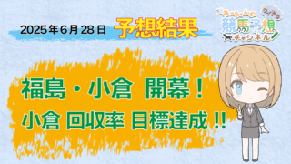 2025年6月28日に開催された、福島・小倉・函館競馬場全レースを予想した結果の的中率、回収率をお知らせしています。