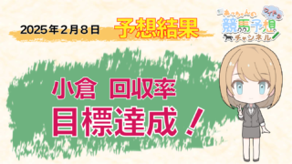 2025年2月8日に開催された、東京・小倉競馬場全レースを予想した結果の的中率、回収率をお知らせしています。