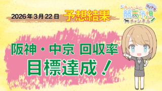 2026年3月29日に開催された、中山・阪神・中京競馬場全レースを予想した結果の的中率、回収率をお知らせしています。