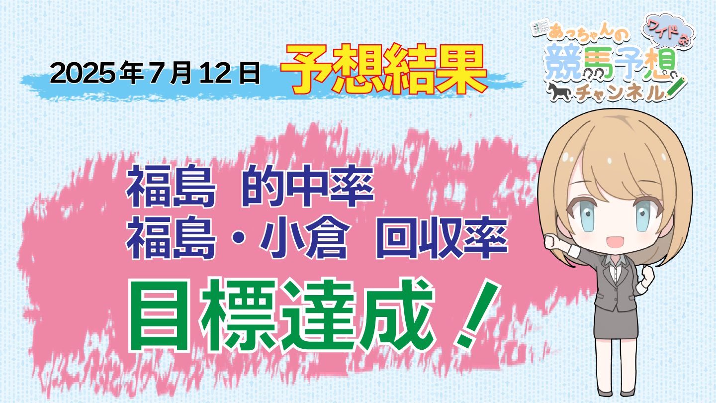 2025年7月12日は、福島競馬場のメインレースで安達太良Sが行われました。1着となった6番人気の2番カルロヴェローチェ、2着となった8番人気の5番ブーケファロス、3着となった5番人気の11番コラソンビートのすべてを予想に入れていなかったため、馬券を外してしまいました。