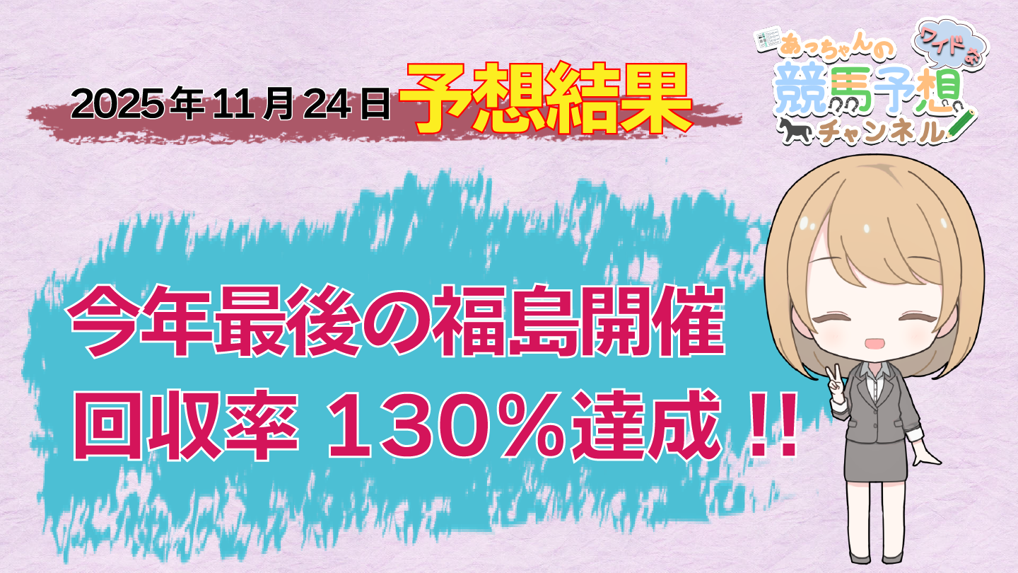 こちらは、8番人気の11番ゴッドブルービーが2着となり、軸馬として予想していた7番人気の3番クロースコンバットが3着となった結果、ワイド馬券が的中し、2,790円の払戻金を獲得することができました。