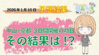 2026年1月10日に開催された、中山・京都競馬場全レースを予想した結果の的中率、回収率をお知らせしています。