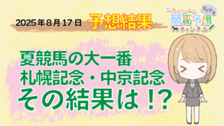 2025年8月17日に開催された、新潟・中京・札幌競馬場全レースを予想した結果の的中率、回収率をお知らせしています。
