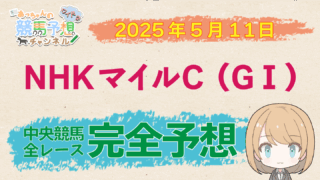 競馬予想 2025年5月11日 中央競馬 ワイド予想 2025年5月11日にJRA(日本中央競馬会)が主催するNHKマイルCのほか、東京・京都・新潟競馬場全レースの予想を公開しています。予想した馬券はワイドフォーメーションのみで購入し、的中率、回収率の100%オーバーを目指しています。 2025.05.11 競馬予想
